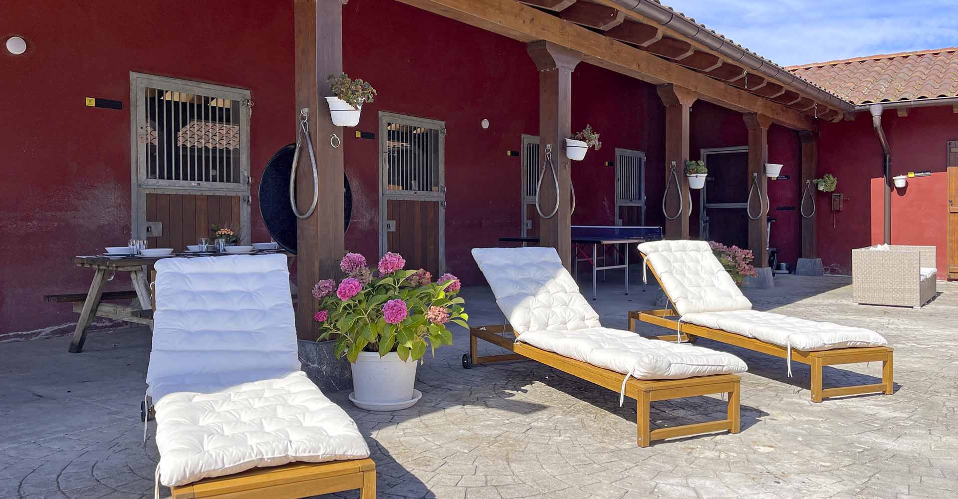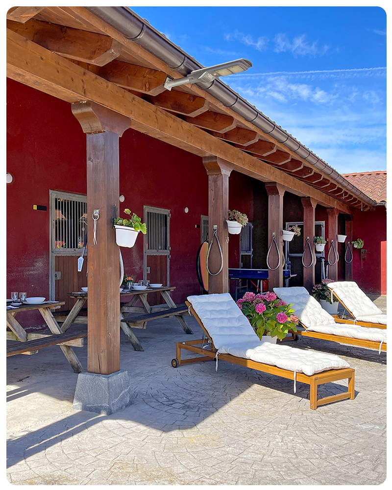 Zona exterior con mobiliario para comidas, sobremesas o momentos de descanso.